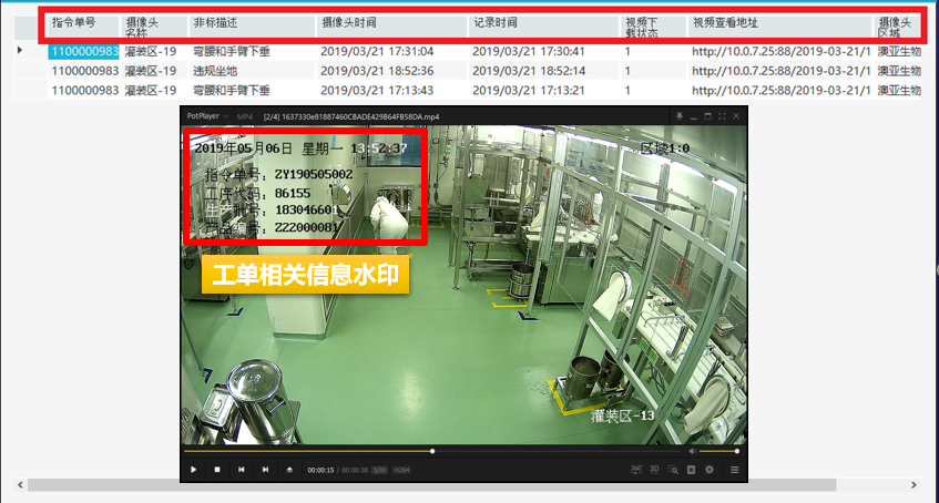 - 依据工单号、工序号、摄像机位号等关键词查询生产视频