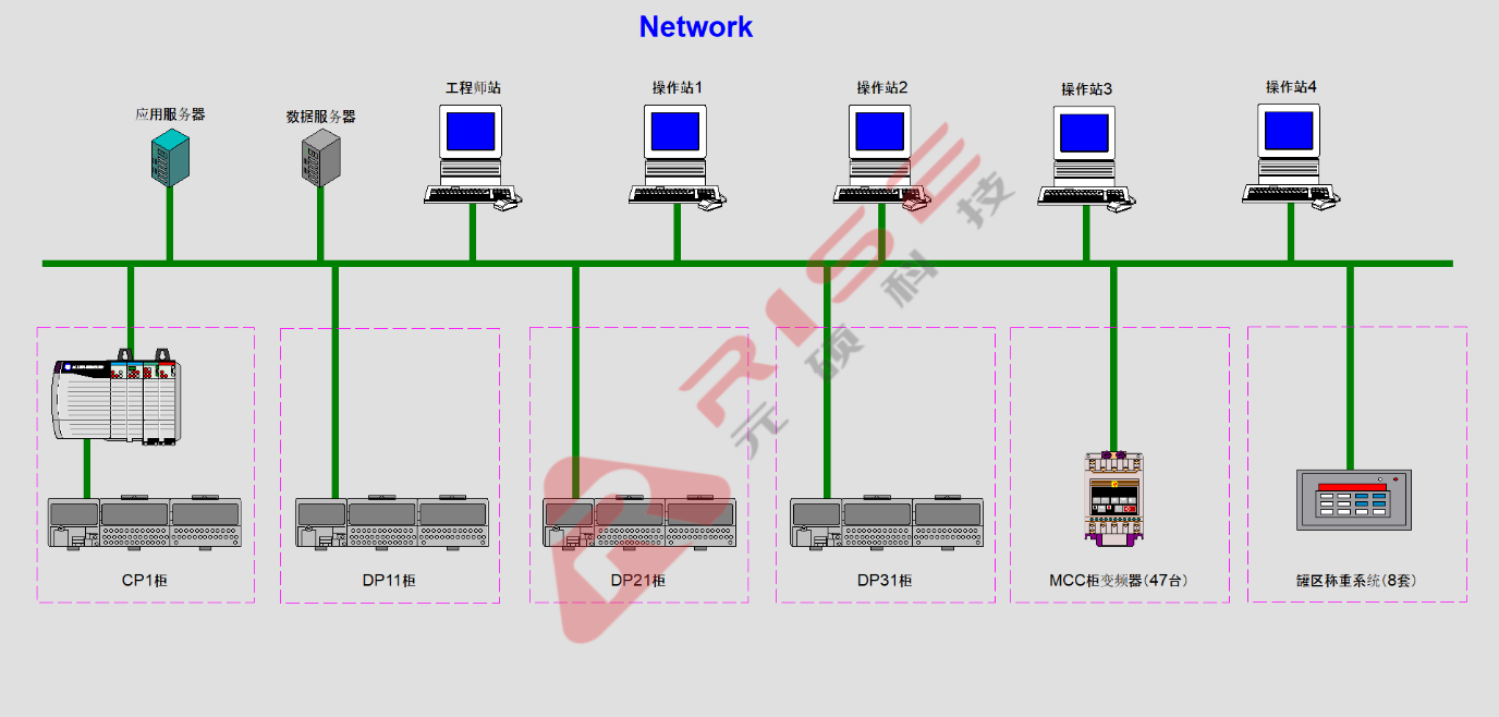某公司控制系统项目位于太仓,整套控制系统包括4台PLC机柜、1台网络机柜、2台服务器、1台工程师站、4台操作站、相关软件、现场设备及现场仪表等组成。