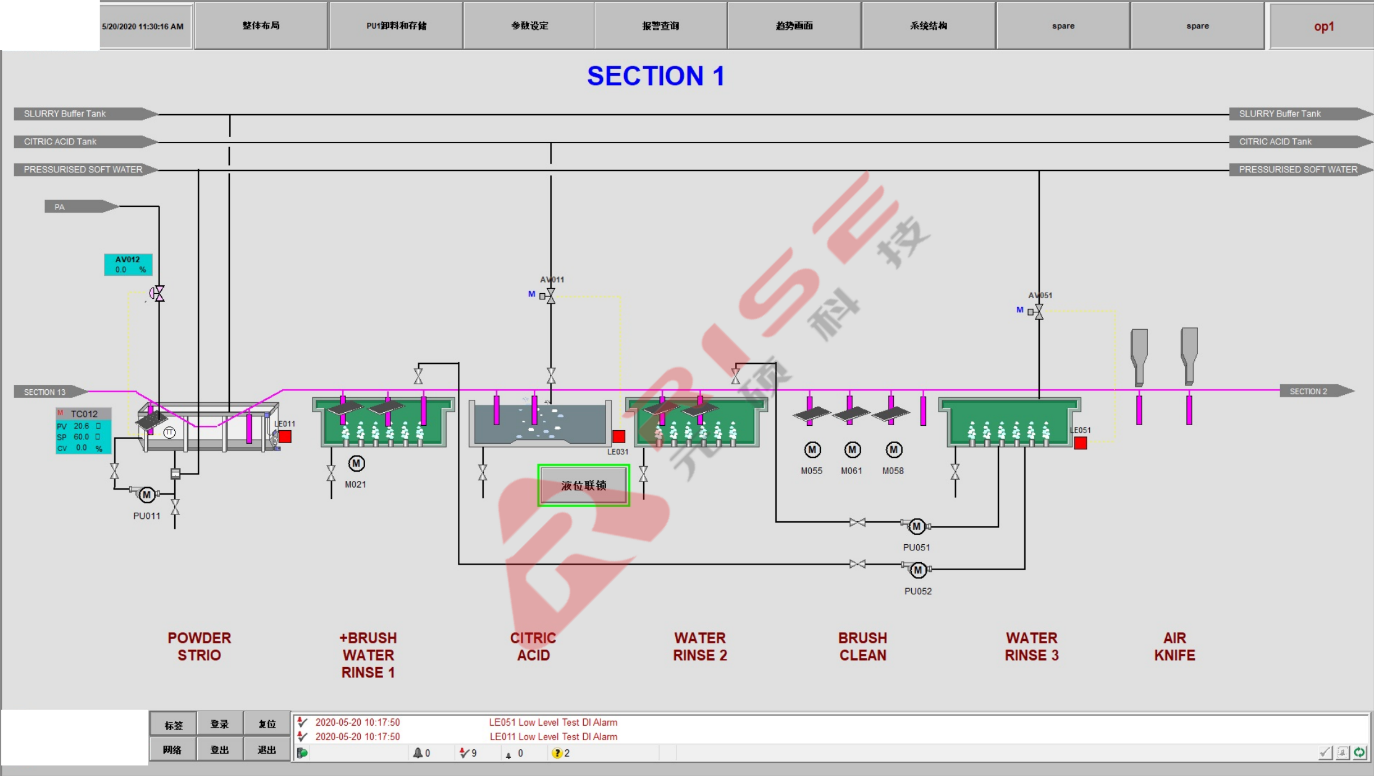 使用AB Controllogix和FactoryTalk View SE,编程采用S88架构搭建。