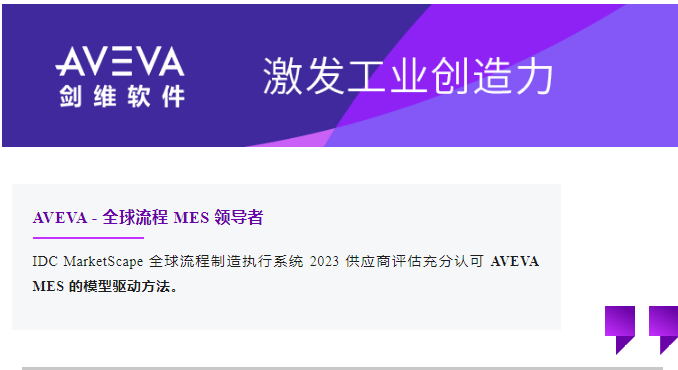 AVEVA 剑维软件荣膺 IDC MarketScape 全球流程 MES(制造执行系统)供应商领导者称号