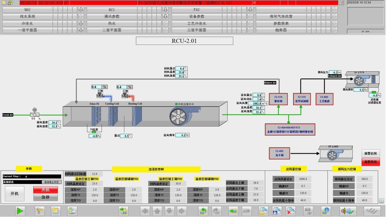 该企业是制药企业,目前企业BMS系统(空调)有很多套,下面就以RCU-2.01空调为例。