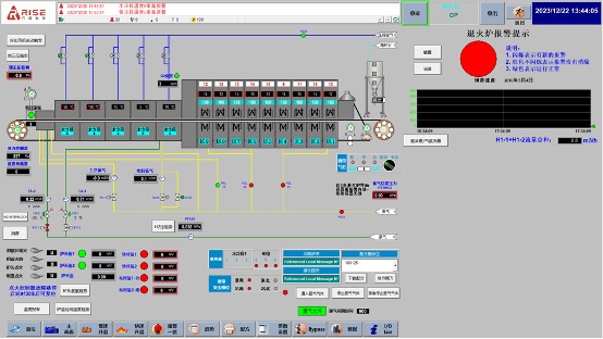 本项目监控系统为新旧监控系统同时进行人机交互,因此设置了安全权限控制系统,分别为只监视和可见可控两种模式。当登入的用户为 OP 时,操作员只可以执行画面切换、数据、状态监视、趋势调取监视功能,其他禁用;当登入的用户为 Admin 时,操作员可以执行画面切换、数据输入、配方输入和下载、状态监控、趋势调取监控功能。